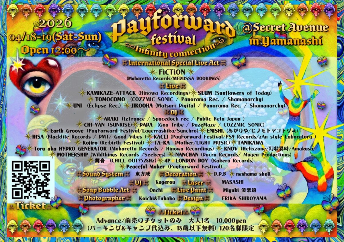 Peacefulな野外レイヴとして知られるPay Forward Festivalは今年で活動4年目になります。